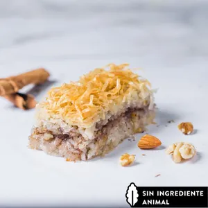 Hilos de masa filo, relleno de nueces, almendras, suaves toques de canela y vainilla con un toque de almibar
